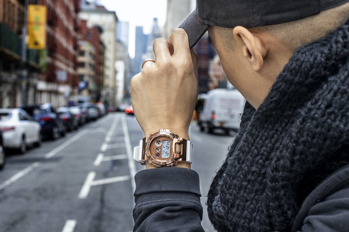 Чтобы отпраздновать 25-ю годовщину 6900, G-Shock выпускает металлические версии, которые он называет GM6900. Сотрудничество с KITH, которое мы здесь видим, представляет собой эксклюзивную версию из розового золота, доступную в KITH (онлайн и в магазине) и в ограниченных количествах в отдельных розничных сетях G-Shock в Азии.