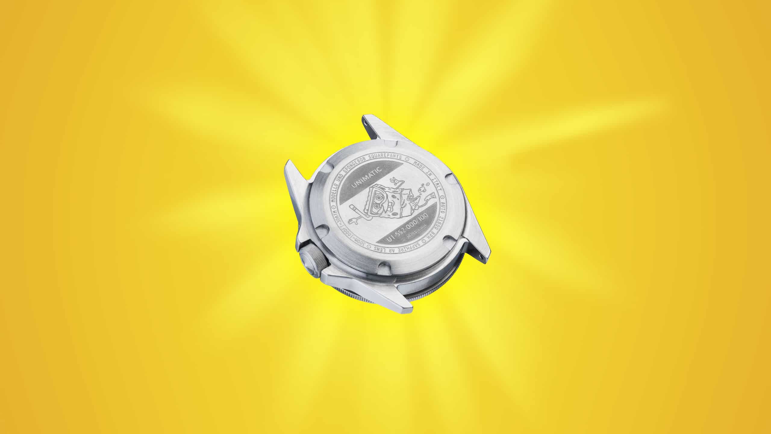 Все часы SpongeBob U1 построены на одном и том же 40-миллиметровом стальном корпусе с толщиной 13,6 мм и 49-миллиметровым расстоянием между ушками. Это все еще тот U1, который мы знаем и любим, и он способен, как всегда, погружаться до глубины 300 метров. Внутри вы найдете автоматический Seiko NH35A, обеспечивающий 41 час резерва и -20 / + 40 секунд в день. Каждая модель выпущена ограниченным тиражом в 100 экземплярах и снабжена специальной задней крышкой с изображением Губки Боба.