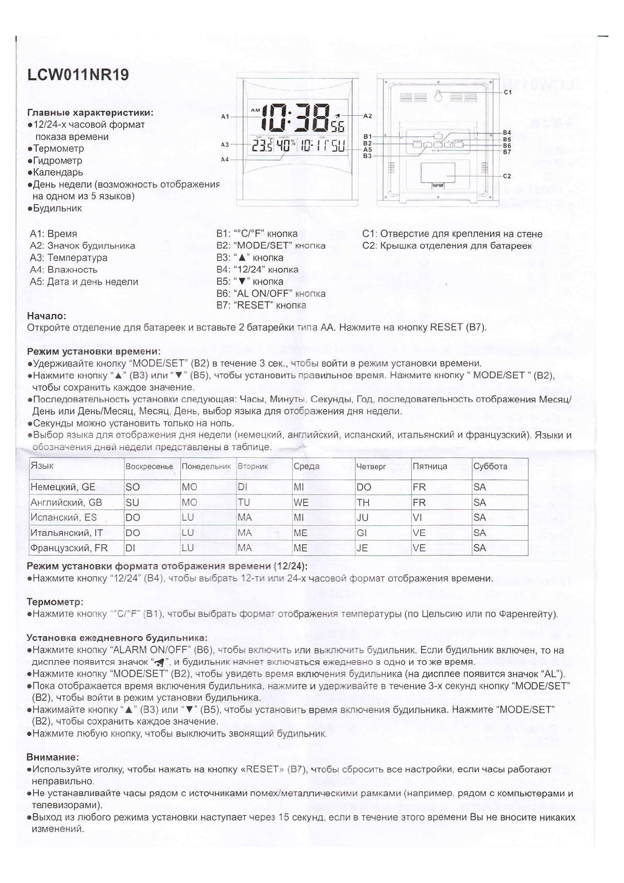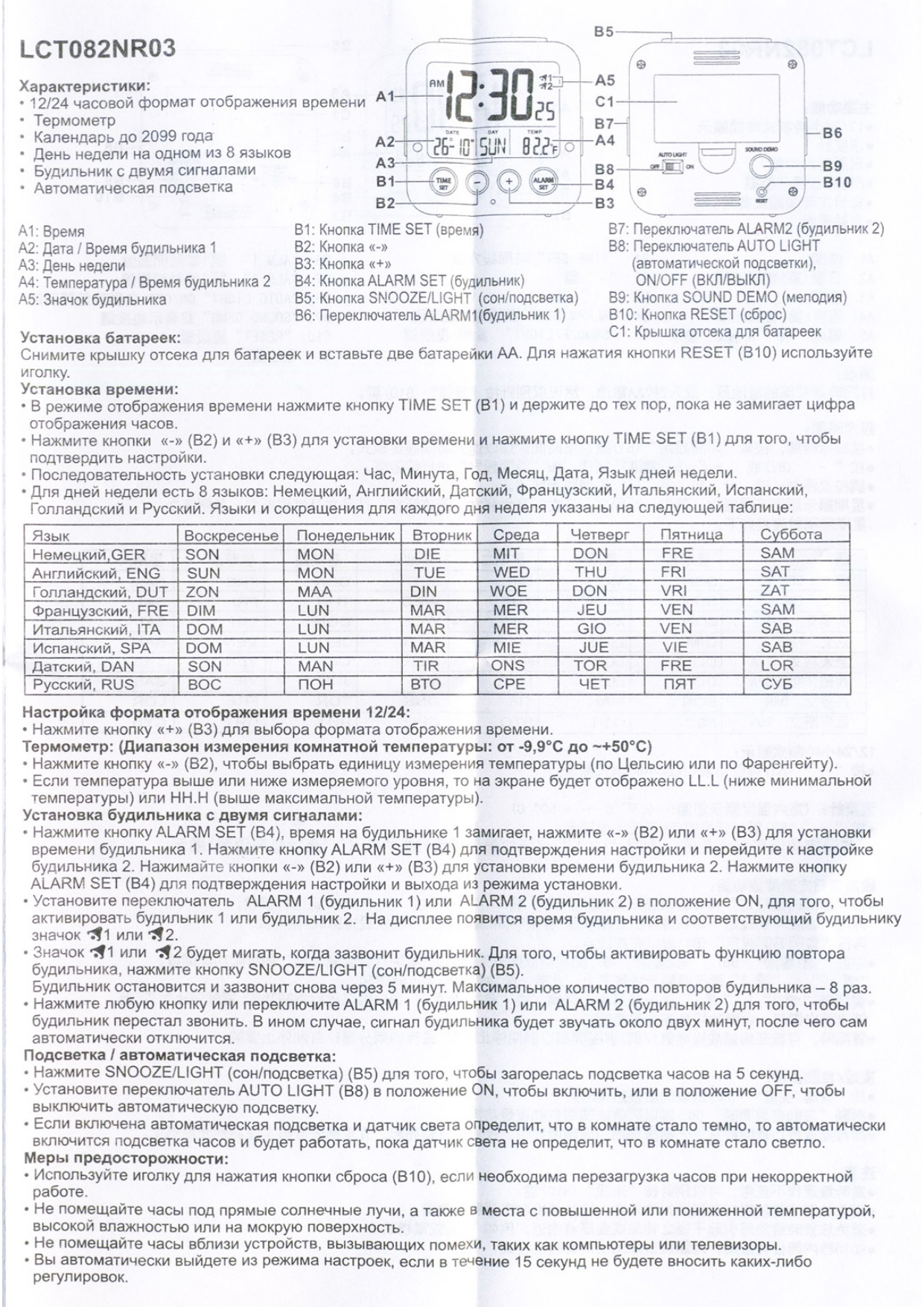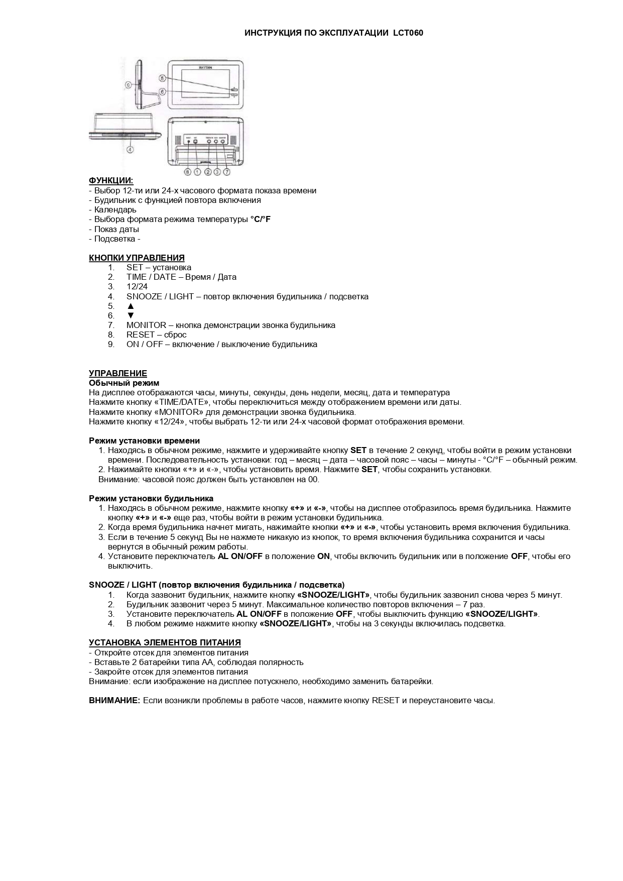 Инструкции к будильникам Rhythm: